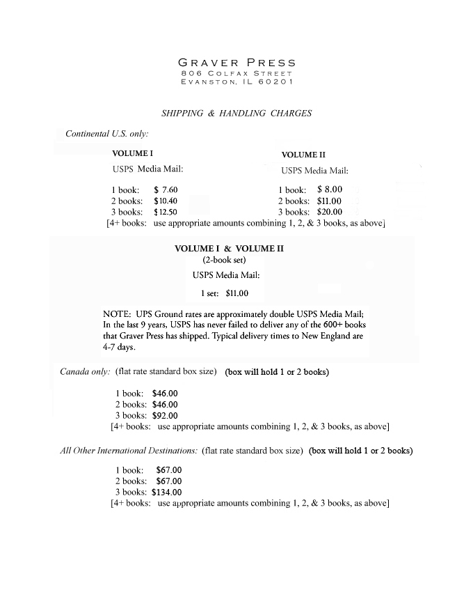 • You may either print out an Order Form and send check or money order made out to Graver Press (because of increased credit card company fees, Graver Press will no longer be able to accept credit card payments);